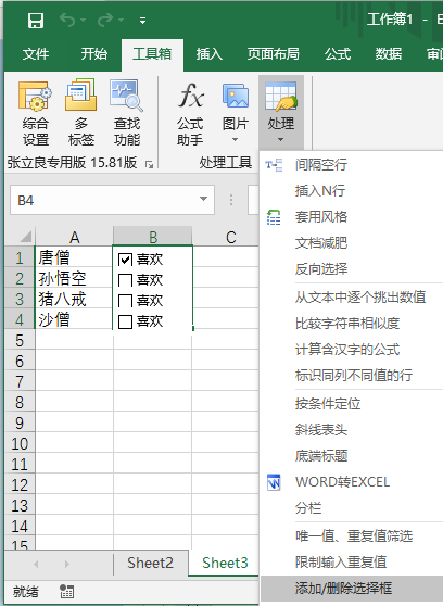 EXCEL必备工具箱--添加/删除复选框、单选框功能: