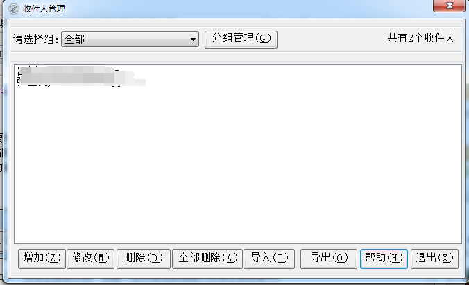 本功能可以对收件人进行维护,也可以导入、导出收件人信息。