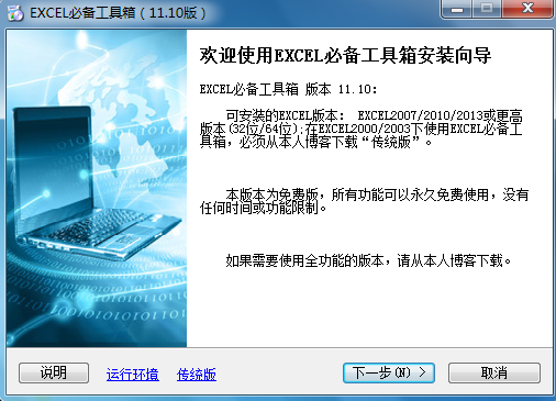 EXCEL必备工具箱分为三个版本: