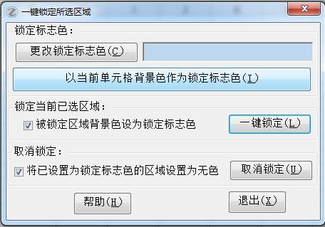 一键锁定,就是按一下里面的内容不能编辑了,底色就变为灰色(颜色可以自己指定),实际上这个功能EXCEL本身可以很方便地实现,不过要经过三步,新手经常提这个功能建议,没办法,只好增加了。