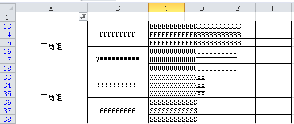 比如,存在下面有合并单元格的表格,要对A列进行筛选,选出所有的“企业组”: