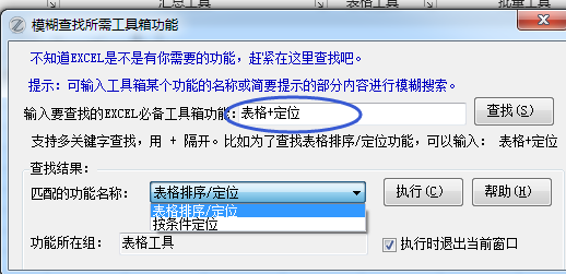 16.40版改进:支持多关键字查找,比如为了查找表格排序/定位功能,可以输入: 表格+定位