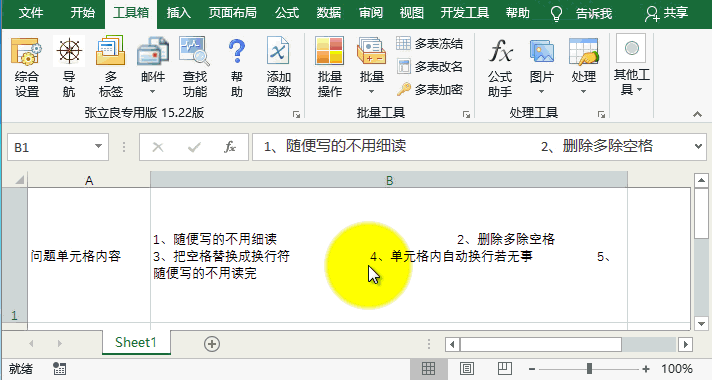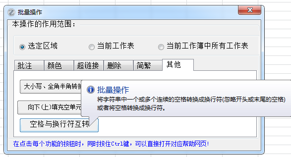 EXCEL必备工具箱,空格转成换行符功能,将字符串中一个或多个连续的空格转换成换行符(忽略开头空格)