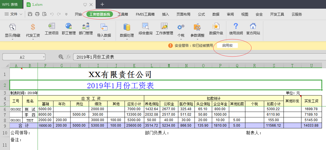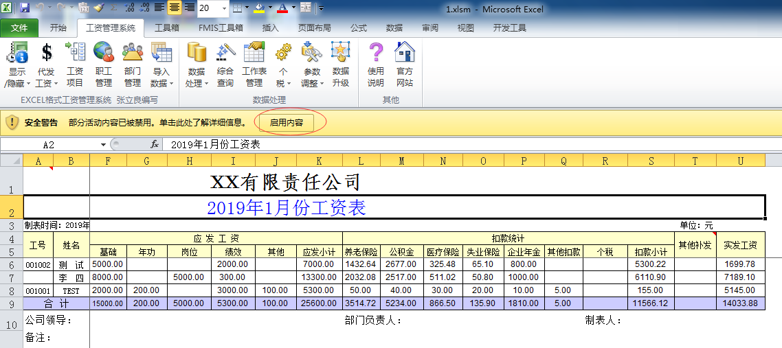 必须启用宏,这是让EXCEL格式工资管理系统各项功能发挥作用的关键!
