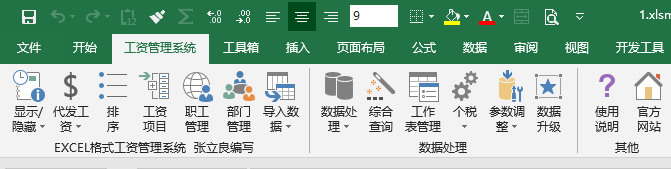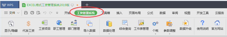2、在功能区出现“工资管理系统”选项卡: