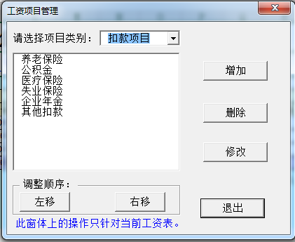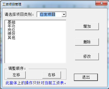 点击“工资项目”按钮,会弹出“工资项目管理”窗口: