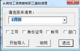 这个功能初始化阶段用不到,是从当前文档的其他工资表复制工行、身份证号、帐号、部门到当前工资表,按姓名进行匹配。