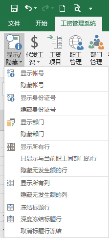 四、显示或隐藏工资表内容: