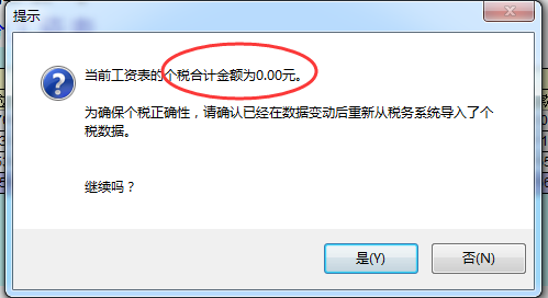 如果当前工资表不是全年一次性奖发放表(全年一次性奖发放表会自动计算个税),会弹出下面提示,以防漏扣个税,就直接发放工资: