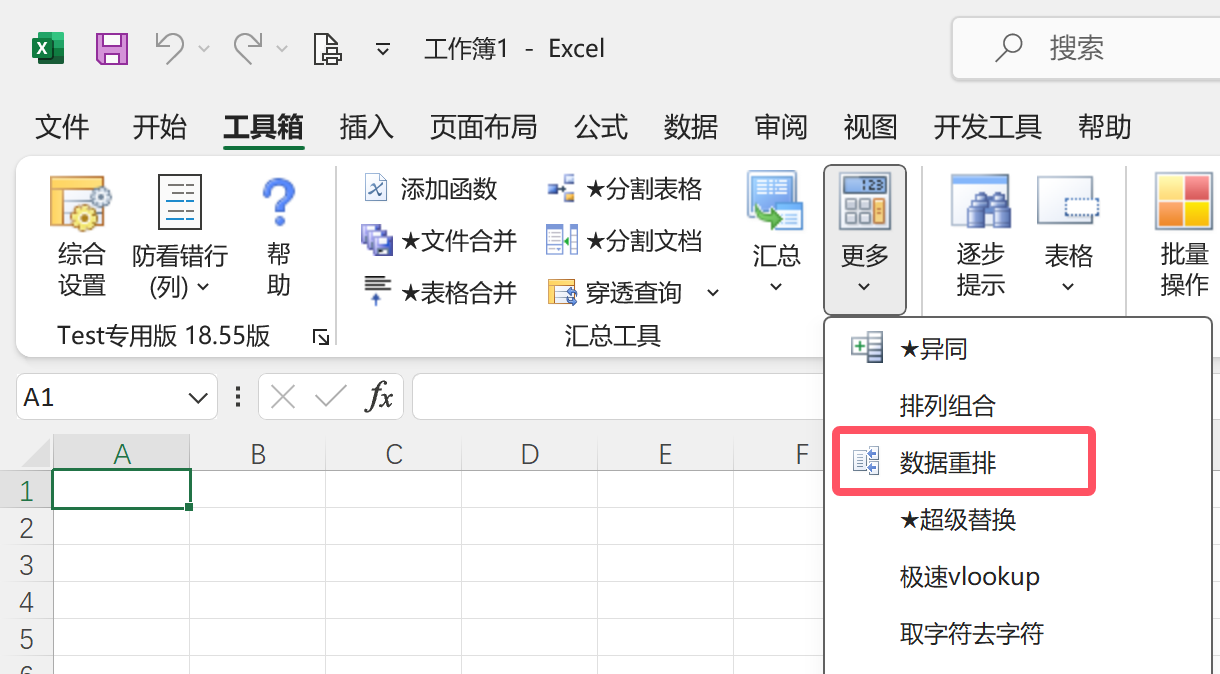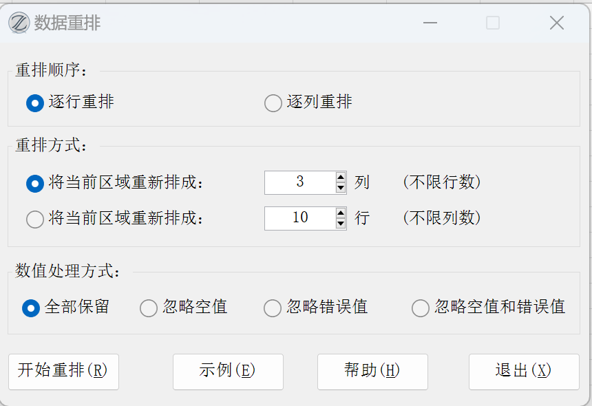 EXCEL必备工具箱,数据重排功能,将一组二维数据,重新按新指定的行列进行重新排列。