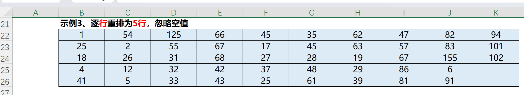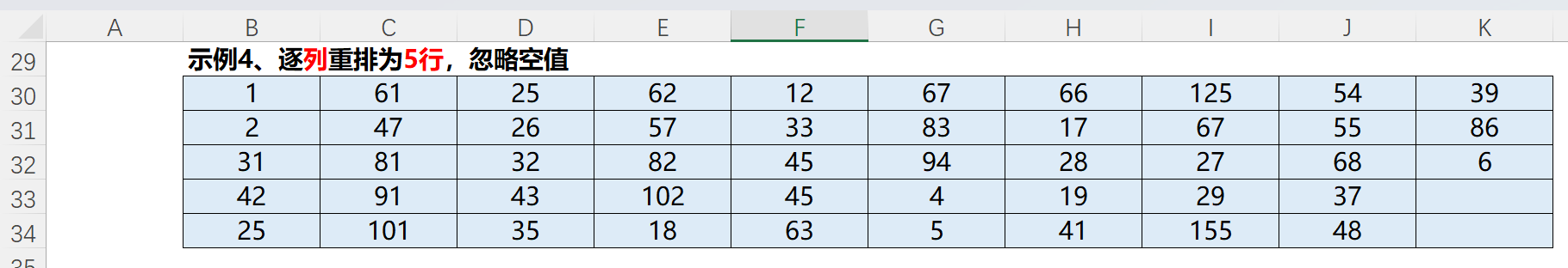 功能简介:将一组二维数据,重新按新指定的行列进行重新排列。