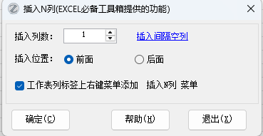 功能简介:一键插入N列,解决你插入多列不方便的烦恼。
