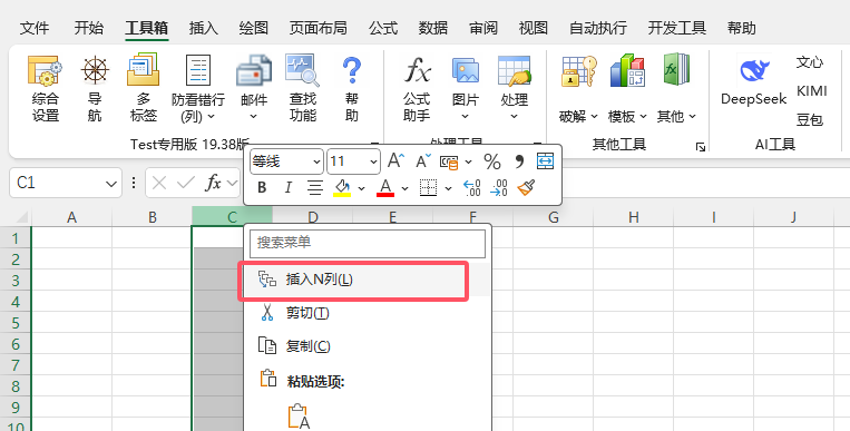 EXCEL必备工具箱,插入N列功能,一键插入N列,解决你插入多列不方便的烦恼。