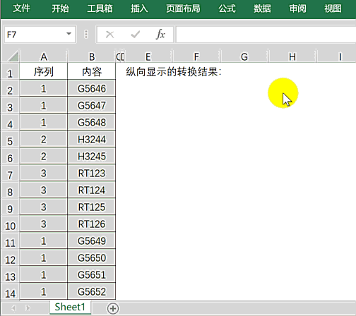 比如,需要将下面的一维表转换成二维表(在进行转换操作前,先选择A2:B14):