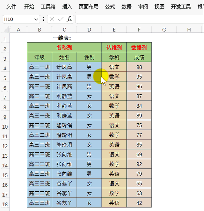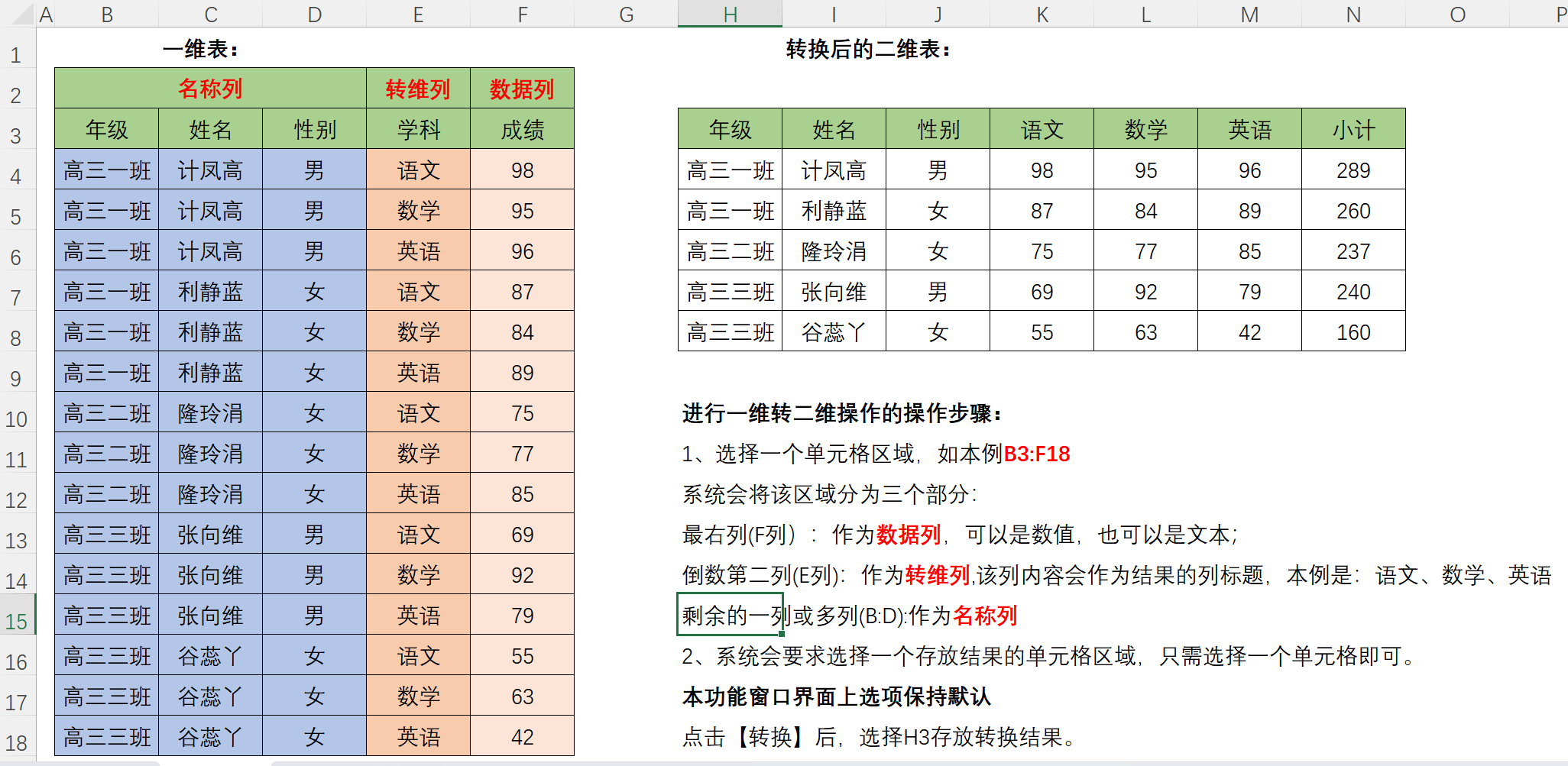 EXCEL必备工具箱,一维表转二维表功能,便于快速将一维表转换成二维表