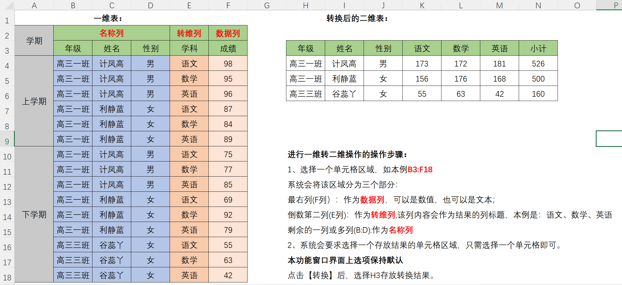 【二维表】模式,支持多列名称,完美实现一维转二维、二维转一维两个功能相互逆向操作!